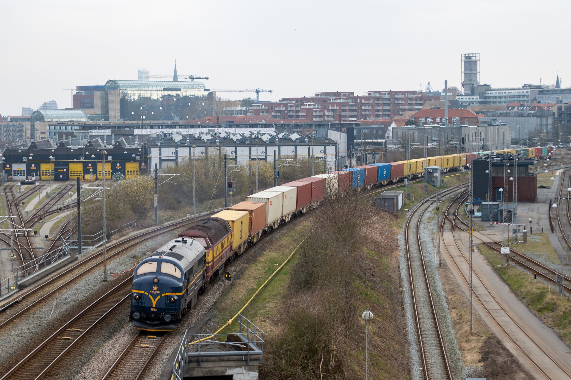 Onsdag den 27. marts kørte VIKING-Rail med MX 1023 + 1833 et prøve godstog bestående af 15 bærevogne læsset med containere. Hvad der præcis skal læsses i containerne i Aalborg, er jeg ikke klar over, men man kunne måske gætte på om det er fiskemel, da containerne minder om dem som blev brugt den gang der kørte fiskemel fra Skagen.